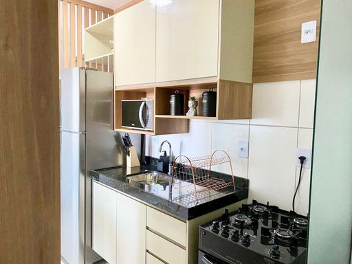 *Strauss quarto e sala com 42,56m²* composição: varanda, sala de estar e jantar, cozinha, WC social e quarto. 01 vaga de estacionamento no pilotis. Valor R$580.000,00 Condomínio: pagando em dia 440 reais