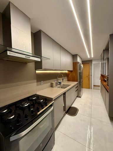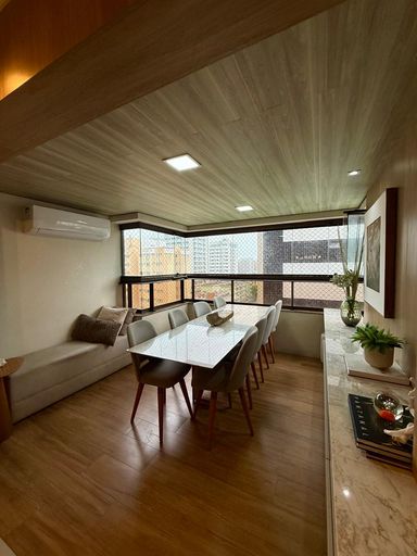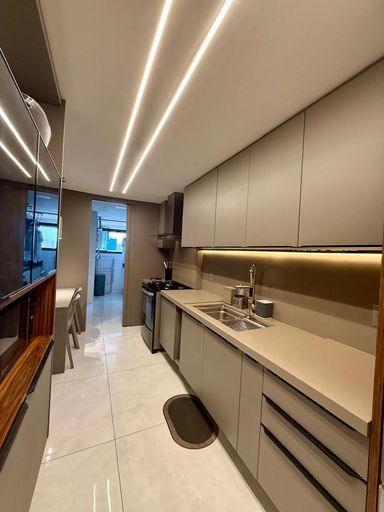 Aparentemente completo de armários com 147 metros sendo 3 suítes, lavabo , cozinha com dce. São 2 vagas de garagem cobertas . Prédio com excelente área de lazer