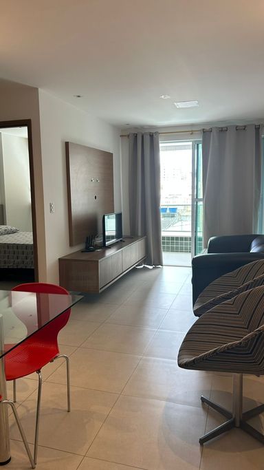 Apartamento quarto e sala com varanda mobiliado bem pertinho da praia 🏖️