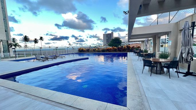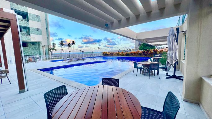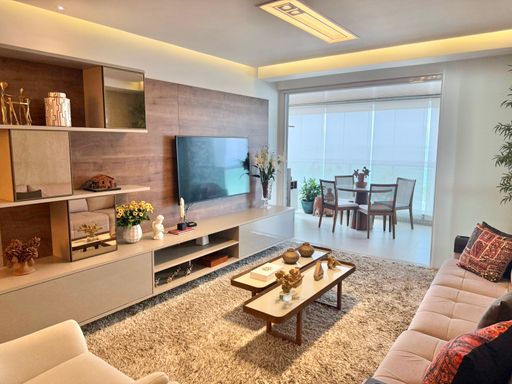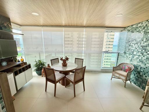 Imagine acordar todos os dias com o som das ondas e uma vista deslumbrante da praia em um apartamento totalmente mobiliado, com 4 suítes amplas, varanda gourmet espaçosa e 3 vagas de garagem.