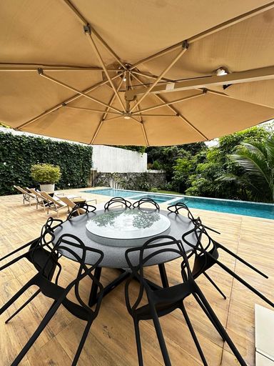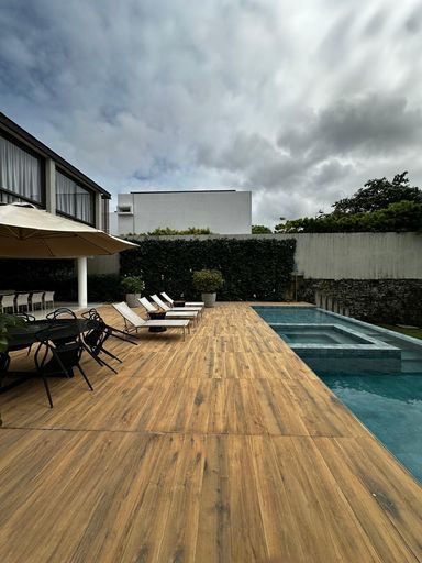 Piscina com deck, prainha e hidromassagem