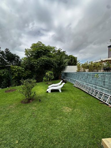Área verde com espaço de jardim nos fundos