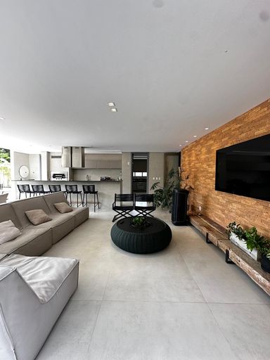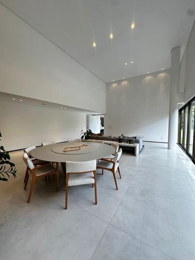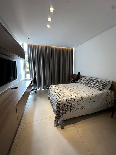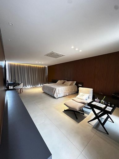 4 suítes, sendo 1 no térreo e 3 no primeiro andar