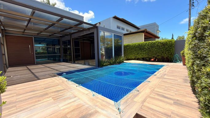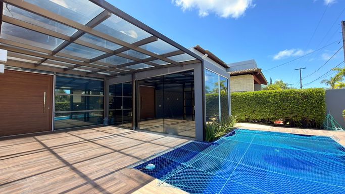 Para os momentos de lazer, a casa oferece piscina privativa, perfeita para aproveitar com família e amigos.